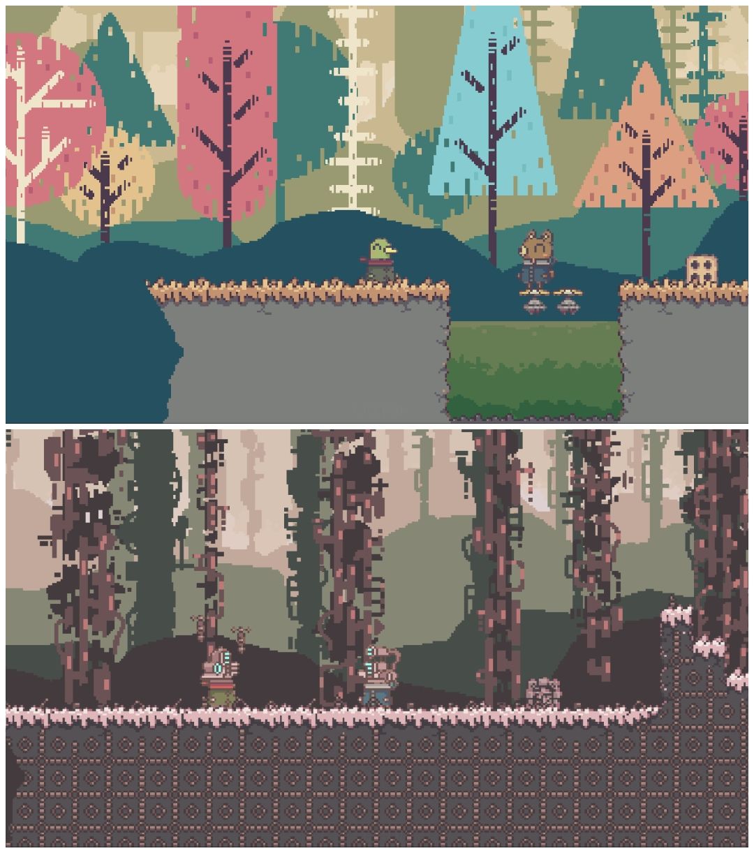 玩法非常的新颖,俩个人是不同的视角,一个绘本风一个废土机械风(大概)。我把相同的地方拼一起了方便对比,实际上双方是看不到对方的画面的。相比其他解密游戏,不同的冬天因为俩个人看到的画面不同,很多地方更需要语言上的沟通配合,非常考验默契。(玩的时候说的最多的话就是你那边有啥)
