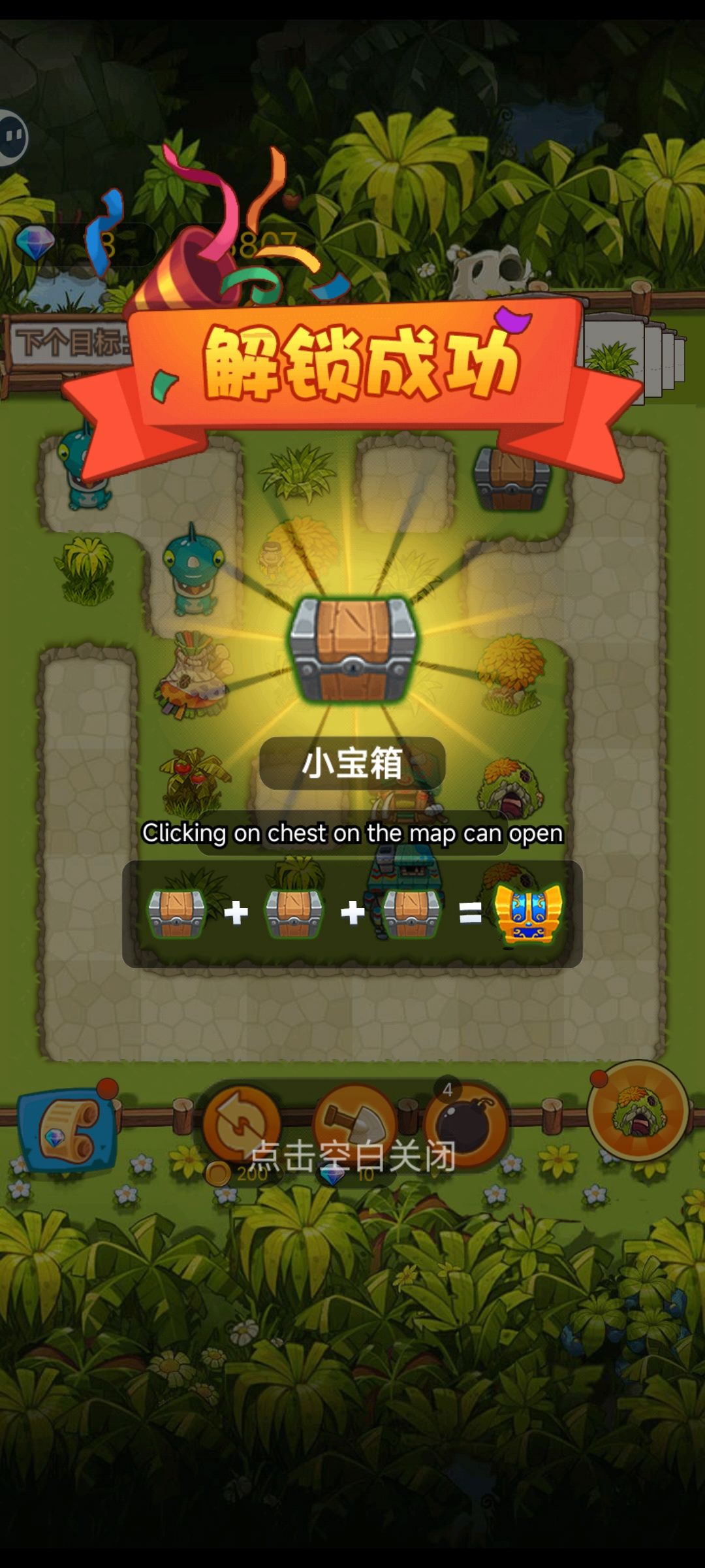 新增了道具系统,铲子可以将植物挖出来,并放在任意位置,再也不用因为差一个格子导致整局艰难摇摆。炸弹不光炸石头,也可以消灭恐龙。而恐龙合成直接出蛋,省去了墓碑那一步,再合成箱子开出钻石来。