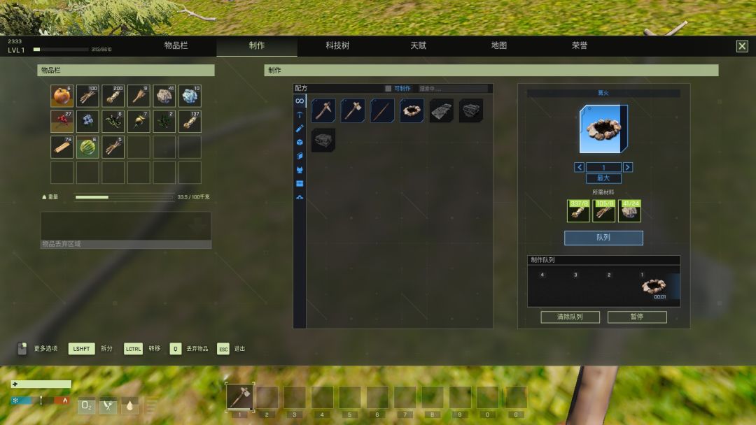 本作的核心玩法其实和大多数生存类游戏并无本质区别,探索地图、收集材料、解锁配方、攀科技树,通过提升自己的生产力来不断适应所处的外星环境,解决遇到的各种问题和挑战。经验值是一个很重要的成长维度,玩家通过各种行为来获得经验值,但是死亡会扣除经验值。说实话,这游戏一个人玩还是很困难的,还是找好友一起才更容易生存下去。