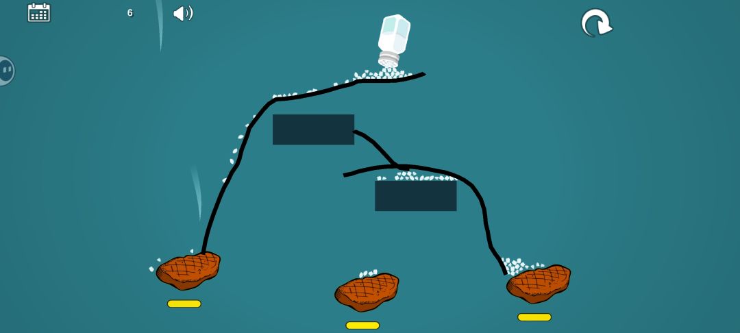 画线把盐洒向牛排吧!~我学会了“截”教,截取生机的乐趣,简单纯粹从最低段填满后,再画高处线,把每个牛排都撒上足够的盐,耍一点点的聪明就能过关。唉,这关怎么还可以这样过?666游戏有非常多的解法,如果只看画线,自然每个人都有自己独特的通关技巧。玩法简单有趣,而且还免费无广告,赞👍从一开始的高低线,到反转重力方向的方向键,再到风向流,游戏我花了二十分钟通到了第14关,,有点累啦。游戏23关还都可以直接玩,真的随心所欲,有空再玩。必须好评😔😔😗
