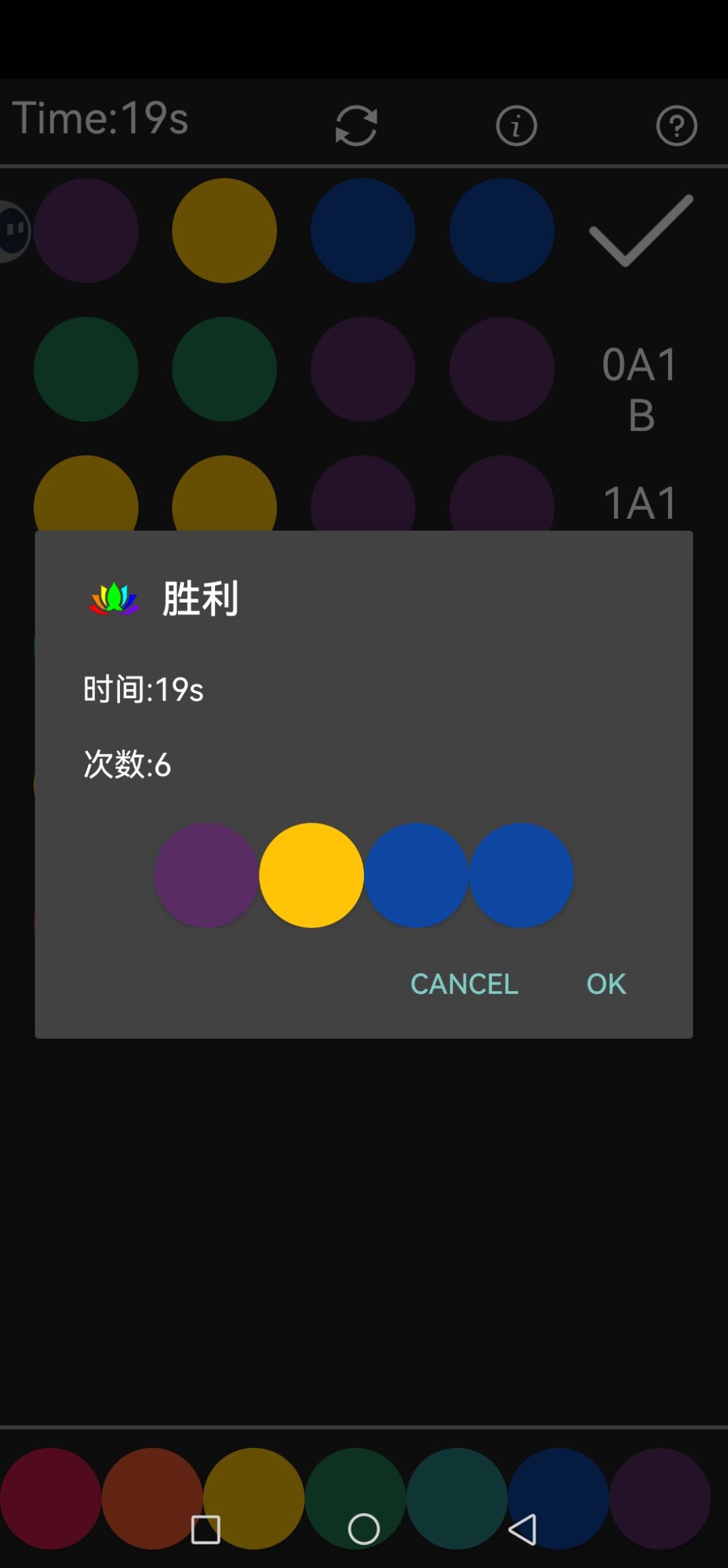 有点看运气 如果一上来就能排除三四个颜色 后续就很快了 如果前四把每次都1B就有点难了 挺好玩的 杀时间小游戏