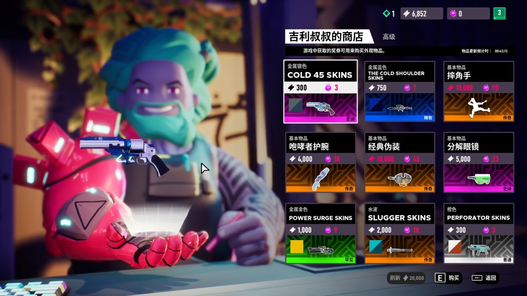 使用赚取的货币可以解锁角色外观、护腕、插件、表情动作等内容,系统很完善。