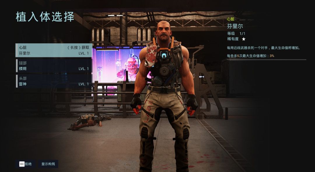 通过闯关,击败随机地图下,不同的敌人获得不同的义体,提升性能和实力。