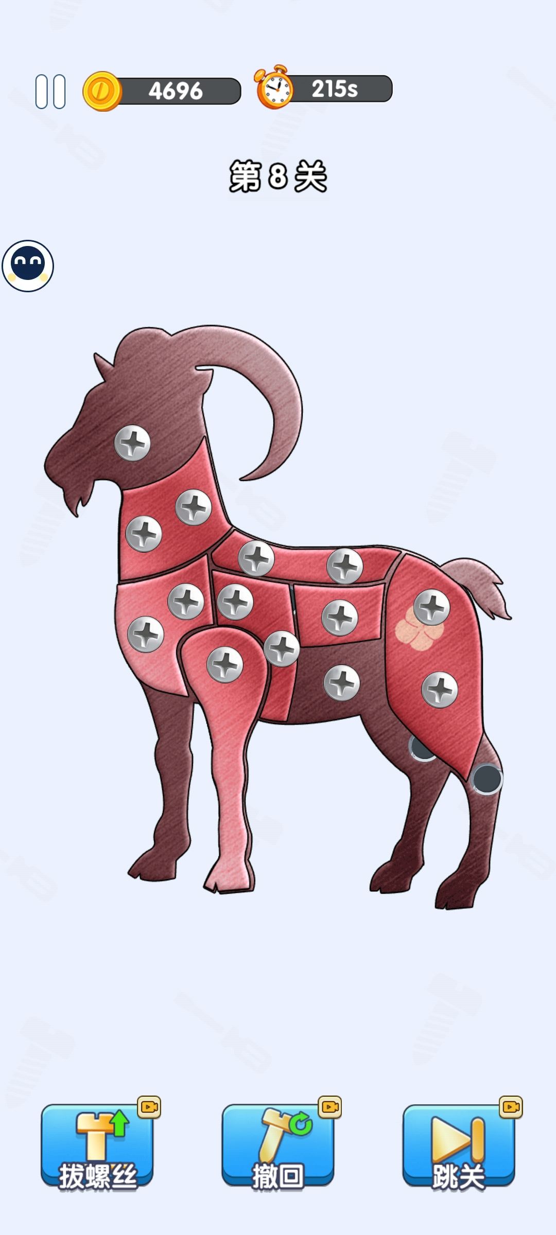 快跑,快跑,快跑!这是拆螺丝第八关,不看广必过不了,试了半天,卡住一定过不了这关😓。还有打个螺丝儿的第八关,也是必定卡关,试了接近两小时,试的连点了哪里下面刷出啥颜色都知道了,必定卡在转盘那里,100%卡关,兄弟们不用尝试了,过了这关后面关卡大转盘更在第二层。这样弄没必要浪费时间了,快跑!
