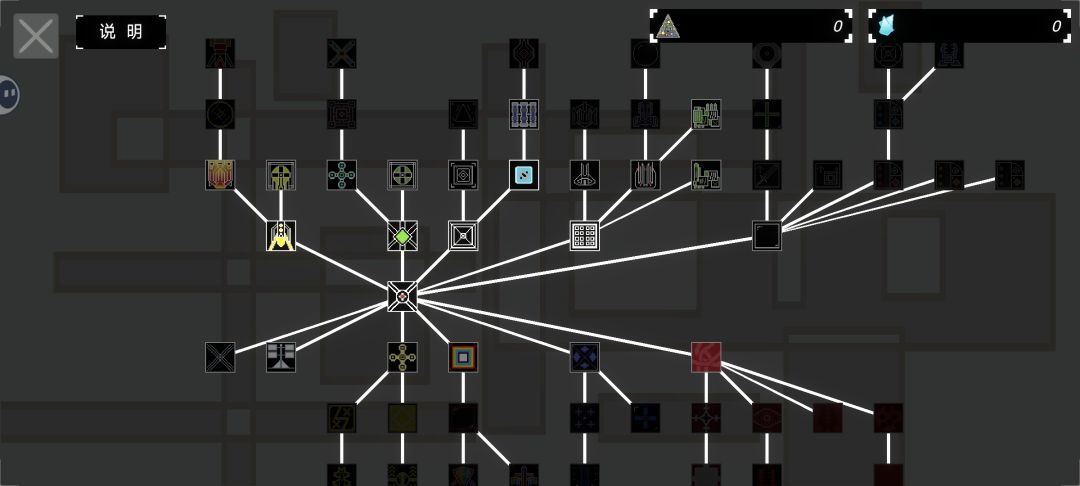 2D黑白风为主,主界面给人以银河系的既视感,体现出宇宙的深邃。界面结构很简单,功能逻辑清晰,大部分界面都有说明。UI品质一般,可以看作色块级别。