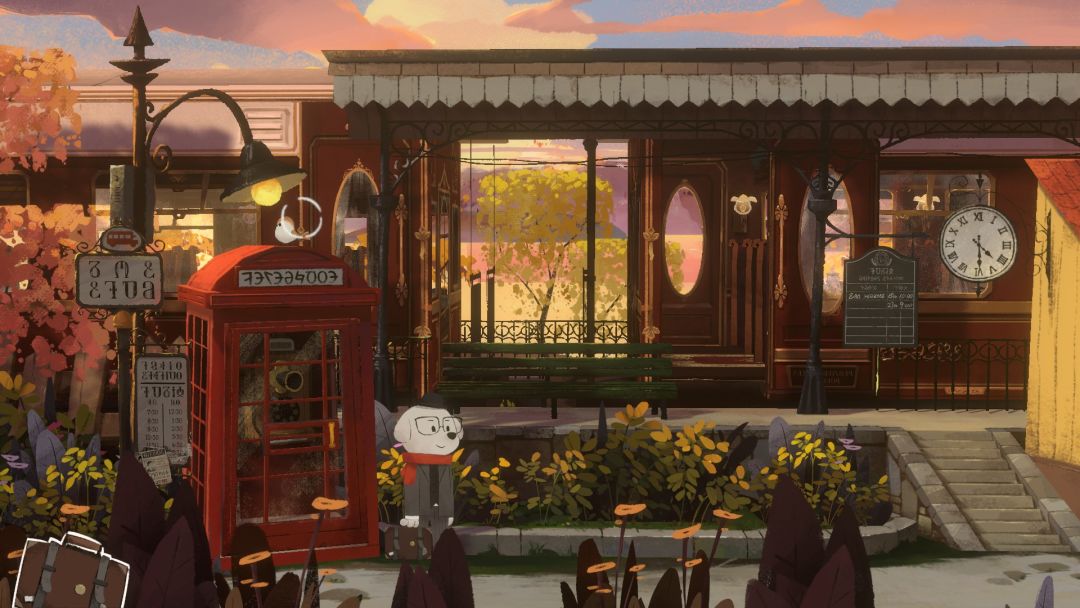 游戏整体的美术风格非常优秀,画风的主题是偏温馨唯美,再加上舒缓的背景音乐伴奏,适合体验游戏的时候来放松放松,解谜部分的难度也有相应的调整,每一处可交互的地方,游戏都做出了相应的提示。谜题也是环环相扣,通过融合在剧情中的方式增加游戏的体验感,让玩家更能带入到角色之中。像是刚下火车的时候,通过询问火车站的售票员可以知道我们要去的地方,但今天最后一趟开往那个城市的公交已经开走了。幸运的是售票员告诉我们可以去问问水果店老板,因为他今天要去那个城市给面包店老板送货。当我们找到水果店老板的时候,此时他却遇上了一个难题导致没办法送货。只有将难题破解才能让老板带我们一程,谜题的设置也完美解决了。