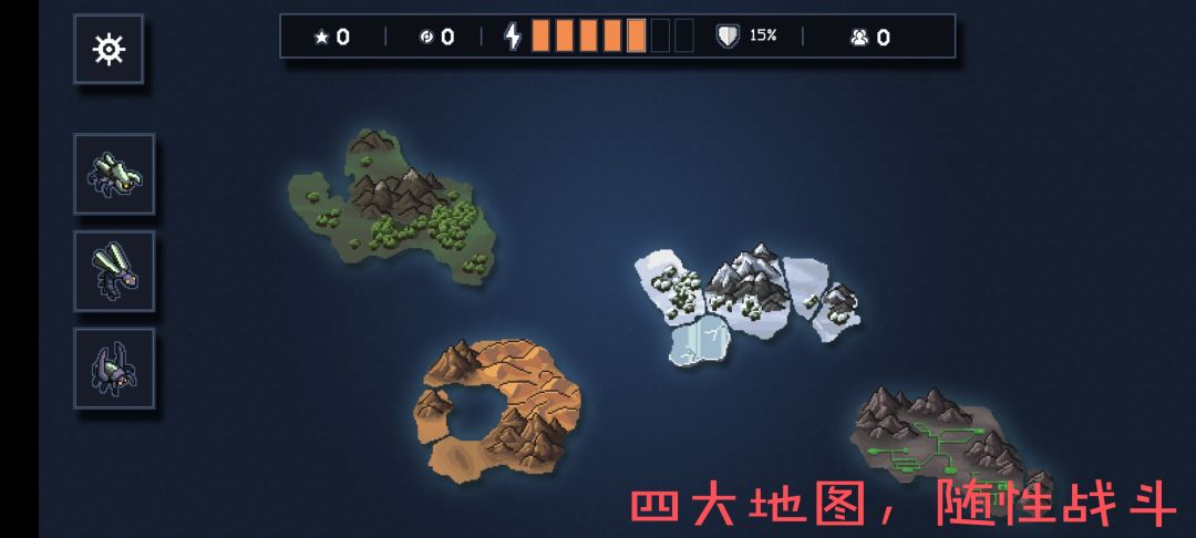 游戏玩法:玩家选择机师选择机甲,穿梭在林地、雪域、沙漠和废墟等各个大陆,与外星虫族战斗。游戏难度多样,从简单到噩梦,有4个难度,开局还可以设置成就任务,完成任务可获得金币奖励,同时可以额外添加拓展包,增加游戏趣味,如高级虫族、高级机师、高级装备和高级任务等。连续成功挑战两个大陆后,即可开启最终之战与虫族首领对战,战胜首领后即可获得荣誉点,用以购买机甲装备和核反应堆进一步强化机甲输出能力。此外,游戏还有特定的回溯玩法,每次战败可指定一名机师穿越时间,回溯到另外一个时间线,与虫族对战。