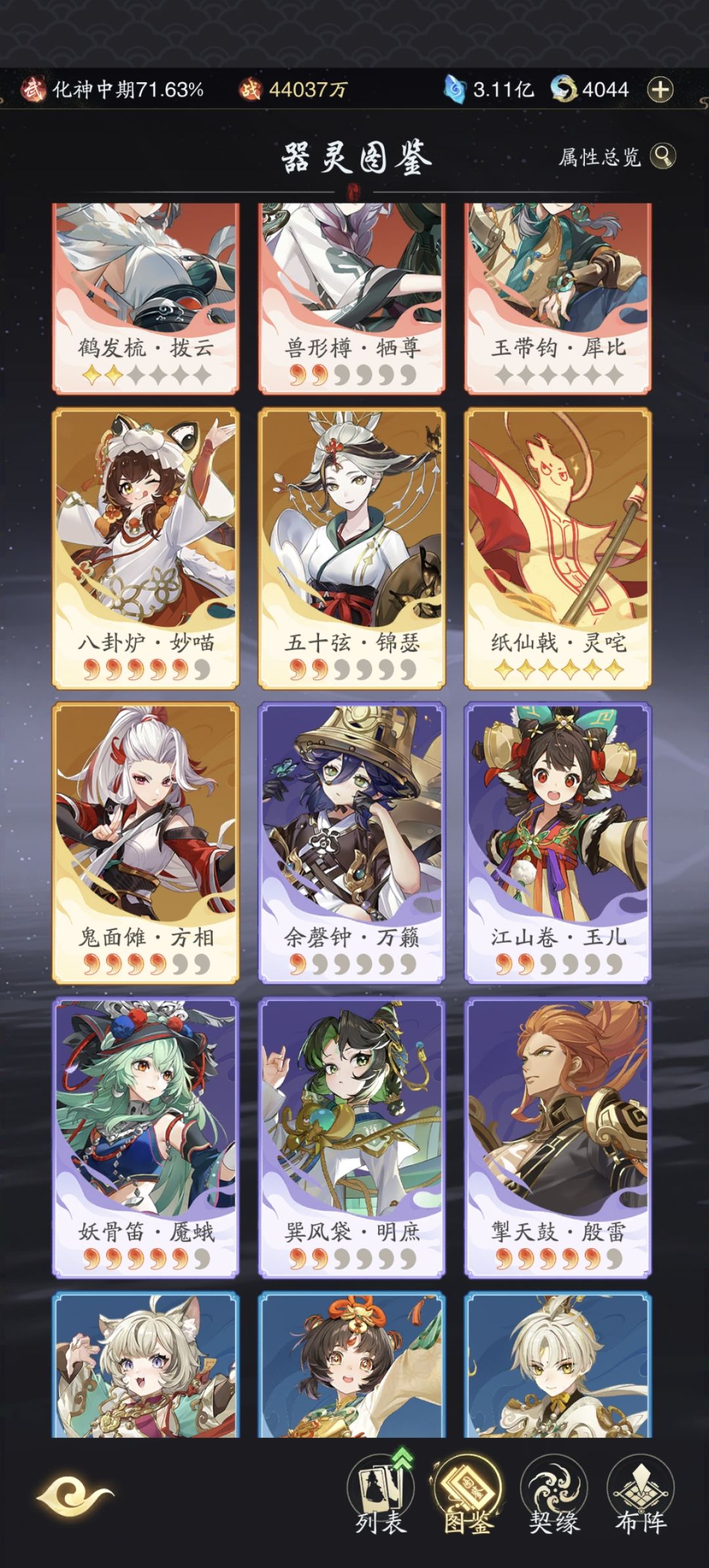感觉各方各面目前还行,尤其是攒器灵抽卡方面,感觉相比别的抽卡游戏相比已经攒的很快了。而且目前出的器灵不多,避免了一大堆器灵从头到尾都没用且做冷板凳的情况。希望后续多增加PVE内容和与剧情相关的东西,建议向一念逍遥和问剑长生一样,增加别的NPC的笔记之类的东西,来弥补世界观。希望九转玉轴里别人视角的剧情继续更新。