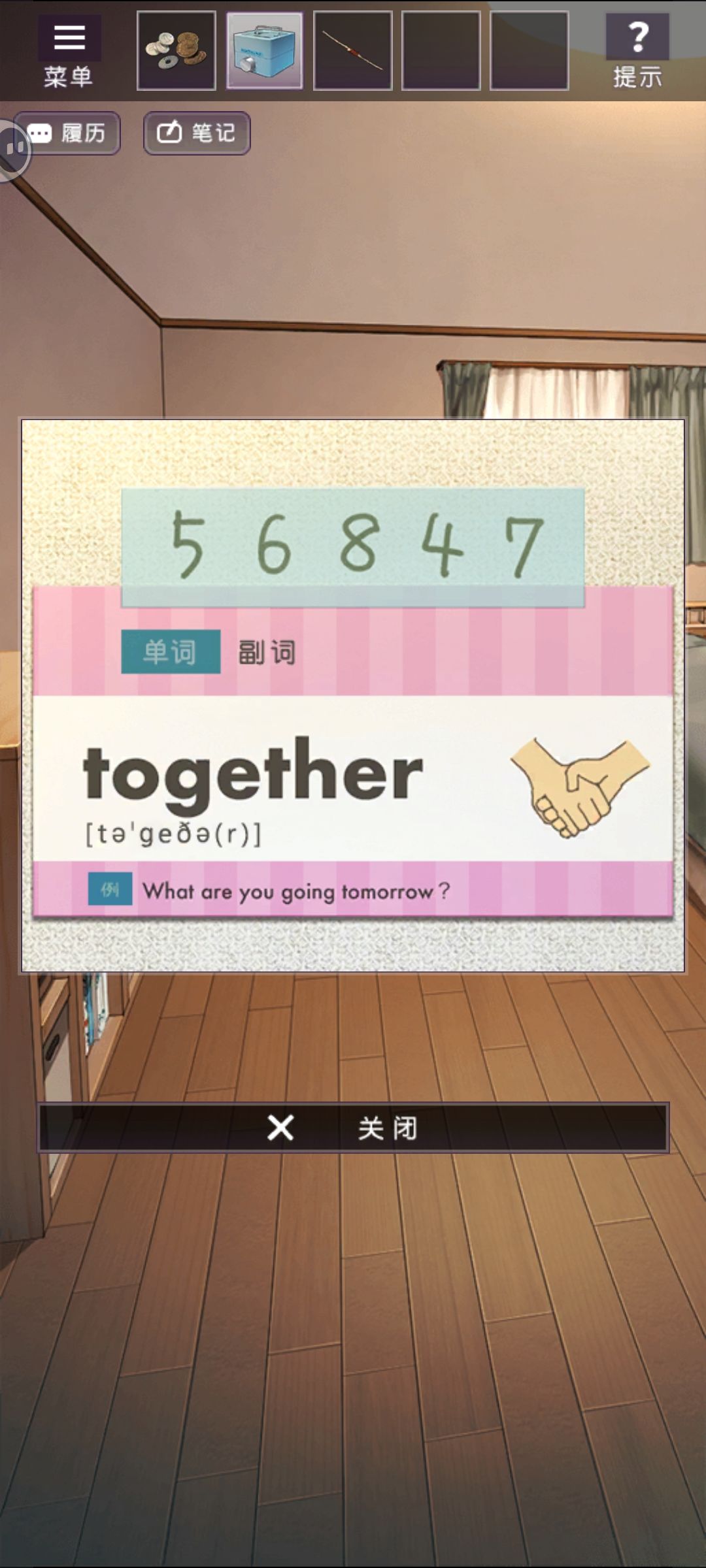 日系风画面+故事本身都很治愈🙌免费且广告可跳过入股不亏🙏剧情走向很好猜,看攻略打出了真结局🙆🙁谜出的不是很严谨——①方向九宫格那个我以为起码下个方向的起点得是上个方向的终点,怎么试试不出答案,结果只是整体方向满足就可以了🙇②日历的更是🙍锁那里提示的右半圆不应该是左半圆吗,与其说是小tip更像是混淆项其中汉化翻译原因的🙋③横纵成词不是只有唯一解🙅④单词卡片能点开,我甚至注意到了together不在例句里🙂以为握手图案是0