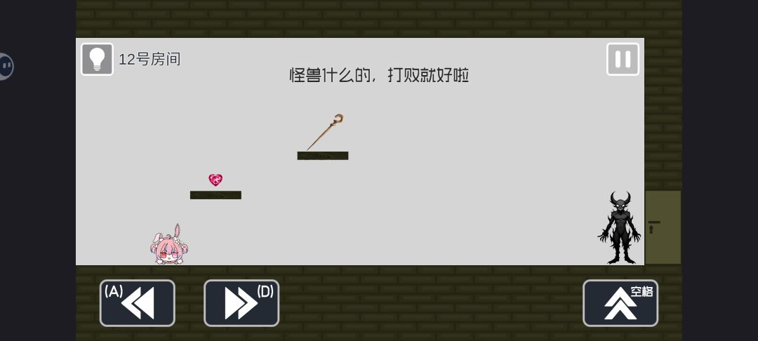 轻度横版动作类小游戏,关卡内容很少,拿到钥匙开门通关即可,有的时候需要一些脑洞,对于操作要求不是很高。没有做引导,只有三个按钮且有中文文本说明,基本上看按键UI就能理解怎么玩。