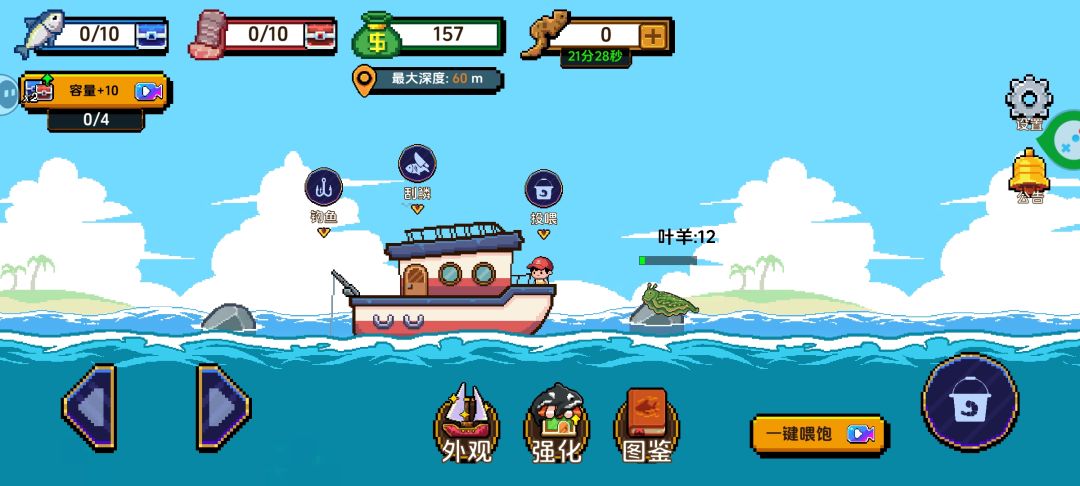 有鱼饵的数量限制,类似轻度游戏的体力机制,用光之后就只能等待回复,或者看广告继续游戏。