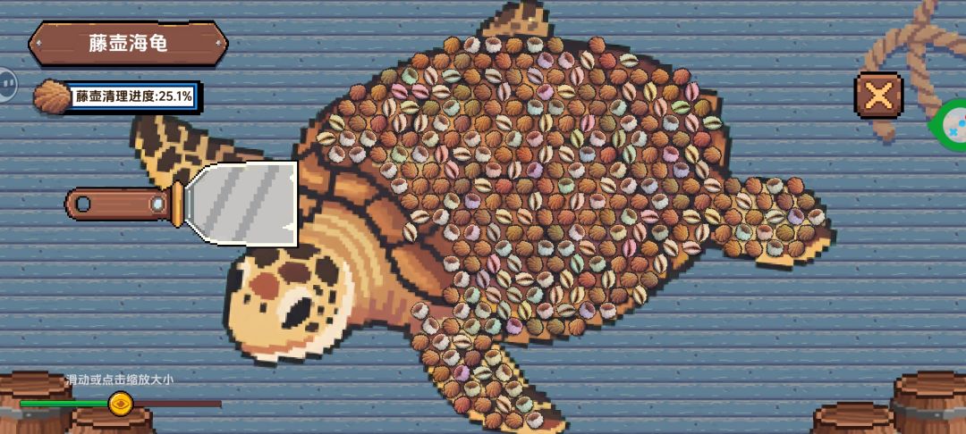 刮完鳞片的鱼就可以投喂了,藤壶有阶段性变化,投喂几次之后即可晋级,到达完全体需要刮鳞,考验刮刀的战斗力。超密集的贝壳很容易触发密集恐惧症,全刮下来自然很解压,但需要一定心理承受能力。
