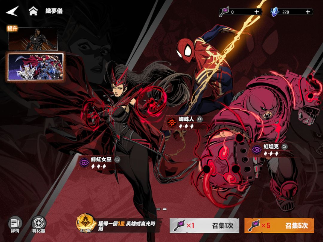 我已经卸载了,这个游戏抽卡爆率是真的低,钢铁侠抽了45抽,没有出过3🌟,保底80抽,而且钢铁侠还是限定,如果抽不完80抽保底,不知道下个池子继承不继承。
