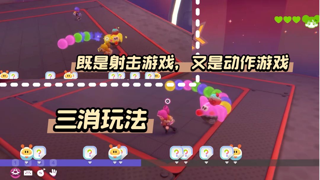 游戏用三消的玩法作为冒险机制,发射子弹凑齐颜色达成三消,这也是利用三消游戏的爽感不断给我带来成就感,同时又作为3d射击游戏,泡姆泡姆也就还多了射击游戏和动作游戏的乐趣