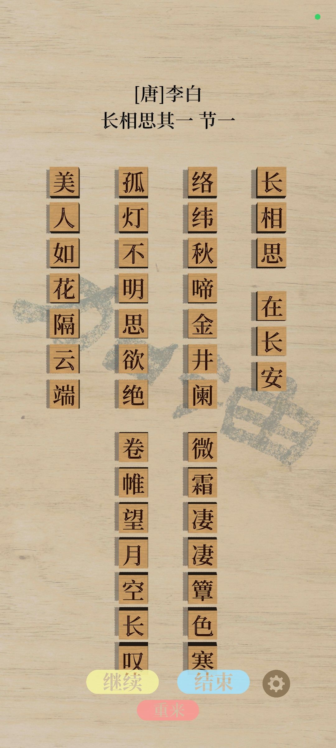 安静,优美,在方块的咔哒声里推敲琢磨古体诗精炼的遣词造句。自带鸟鸣白噪音,整体十分舒适。