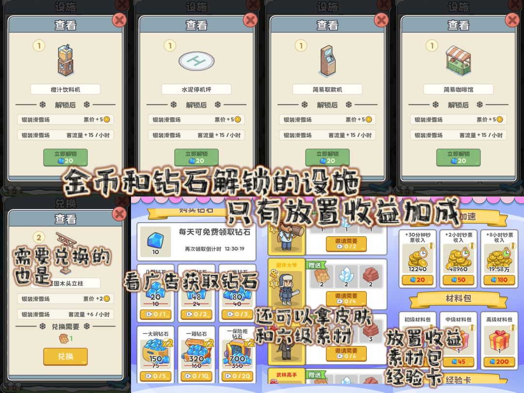 定位:一款以滑雪场为题材的放置经营类游戏
