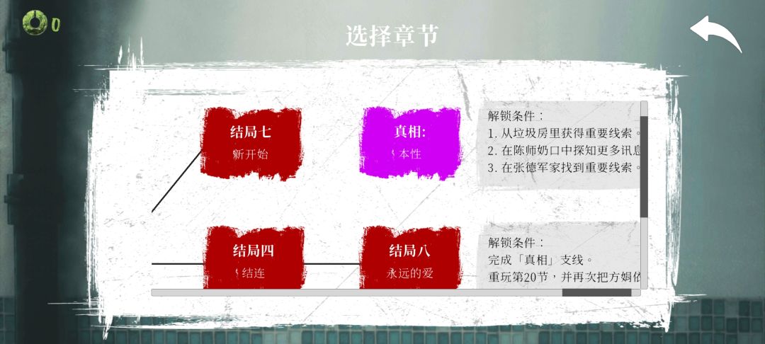 本来很想收集其他支线和成就,想看看别的角色更多的故事,但是最后那两章反复玩了几次已经失去兴趣,尤其是方娟从垃圾房出来变成恶鬼的时候声音实在是太难顶了,于是选择在评论区看看大家发的。