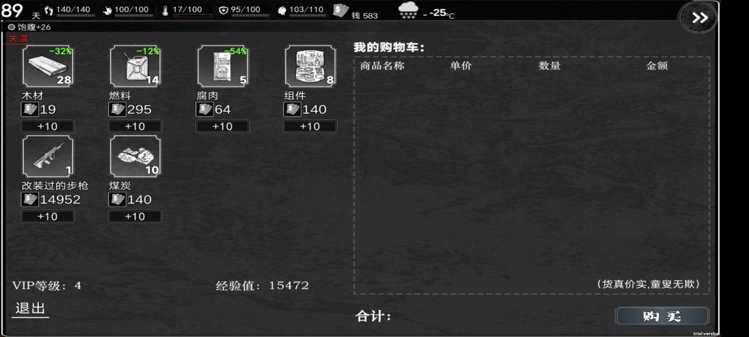 那么流程推进推荐方面攻略 前期反复睡死攒点轮回币点开 开箱+1 体力回复和上限+5就好 这样开荒会舒服一点 不用死死磕 然后早做灶台药品台 生熟肉的饱食度是两个世界 反而三级肉和普通熟肉之间没那么大必要去升级 二级科技的必要条件是齿轮 齿轮只能用一级科技去医院门口摸 我甚至玩了这么久还没从其他地方拿到过知道的可以补充 与前几部一样的每一部都会有那么些没用的物品 这一部是陷阱 花两天用三腐肉抓一块生肉上来 后期升级还浪费资源 我推荐是一开始就不要造 无用 多推旺旺线 给的刀和雪地车都是开荒神中神 要过三十天推剧情没有什么太大难点 多做道具 撬棍铲子锯子去卖钱 我也不知道为什么设定那么值钱 枪都没撬棍回收高 富完第一波开始滚雪球 投给游戏机去挂机就好 一大段时间不用什么钱 前期每天推荐做 健身 摸猫 马杀鸡 去推完剧情仓库坐十体力板凳就这些 天赋前期开荒推荐 白羊座 烟c局(直接前期高价拿去卖就行不用留着用直接开始滚雪球) 永久工具忘记叫啥三个不一样 总的就是钱 体力方面 如果要打无尽 推荐必带天赋八百里神射手 后期全是怪海 必须枪械穿透