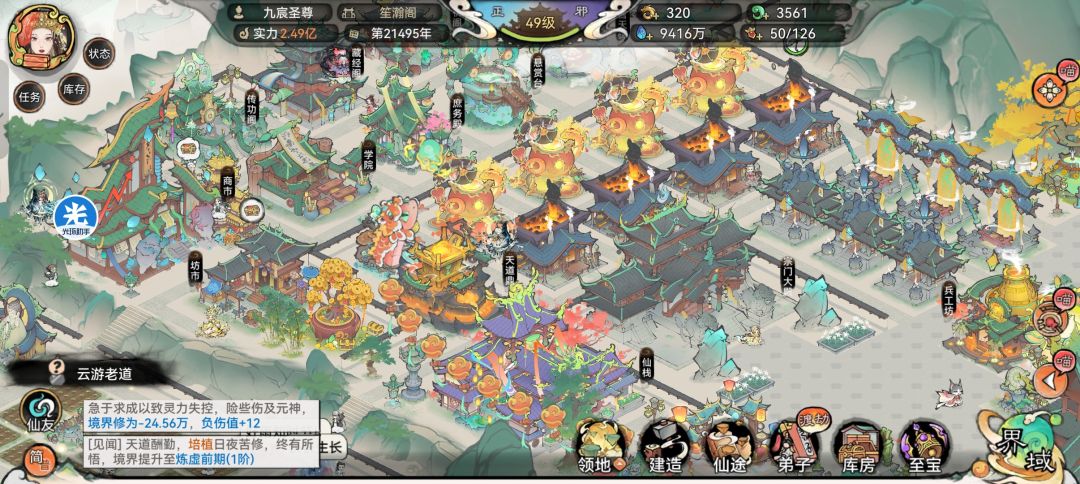 第三个是有一点门槛,当然如果你是佛系玩家只专注休闲是没有门槛的,如果不是休闲而是想玩好这个游戏,是有一定的门槛,先不说游戏里面各种玩法内容模块非常多,光是弟子搭配和功法搭配就有的难受了,不看攻略视频是不可能很好的玩下去的。