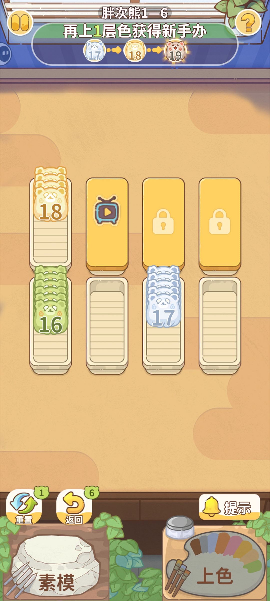 前几日隔壁看到了,堆叠合成的玩法规则在小游戏中用到过,相对常规一些。但没有像其他小游戏那样,分10个合成等级格子不够的状态,反而只有几个等级,避免了很多枯燥的重复操作,合成出新的手办即可完成关卡。