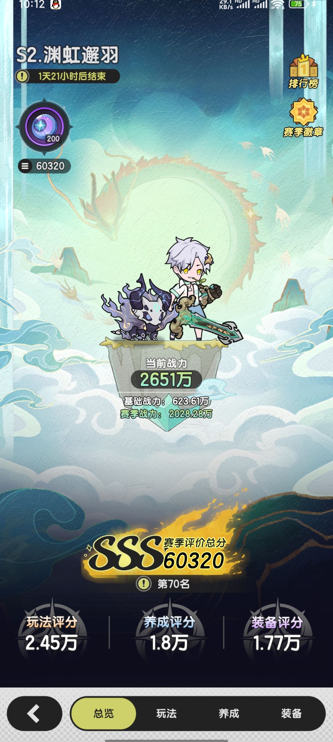 不过话又说回来了,杖剑只是一个放置手游,战力到了是有一套隐藏的数值系统的(很早之前我就发现了就算换完装备涨的是效果命中之类的属性,只要战力涨了打怪打出来的伤害也会变高)。4v4这种玩法对于绝大多数人都是接触不到的,pvp和挑战赛也只是一个混奖励的途径而已,打不过的副本都是坐氪佬的车,推不动的图等换装备涨战力去打就好了,最不济dlc图推不动,也能让怪感受一下下赛季的阶位神力。我作为一个开服的斗士玩家,s2超模的时候我古剑城也是得找大佬带困难以上,彩强袭我也过不了本,战力不够的图过不去还是过不去。不过杖剑这游戏好就好在虽然不是真的睡觉变强,但是你睡一觉起来是可以变强的,不用氪多少,该拿的奖励都能拿满,不苛求s通关打个a碎片什么的也都是溢出,是可以当佛系玩家并有良好的体验的。