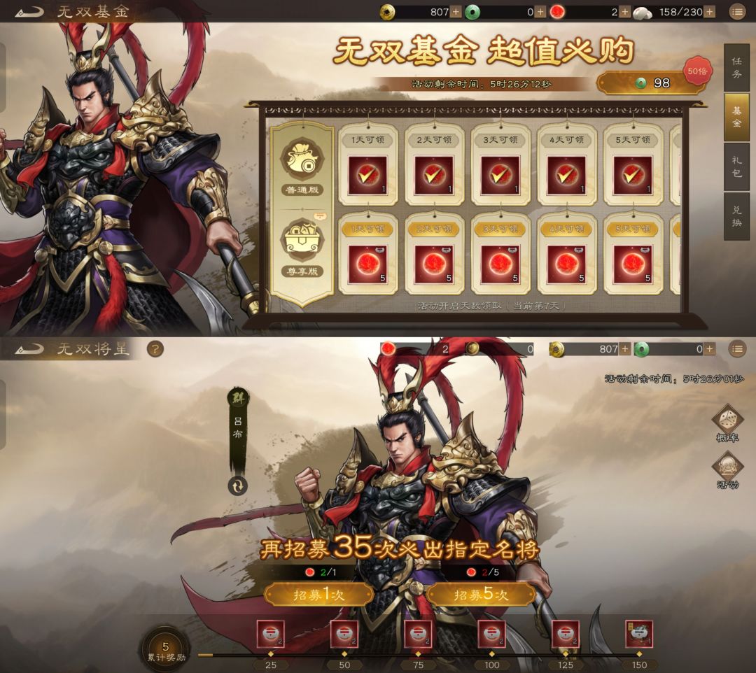 ⒊微氪,拿个无双战令,整个主c吕布,就能玩的很开心了。