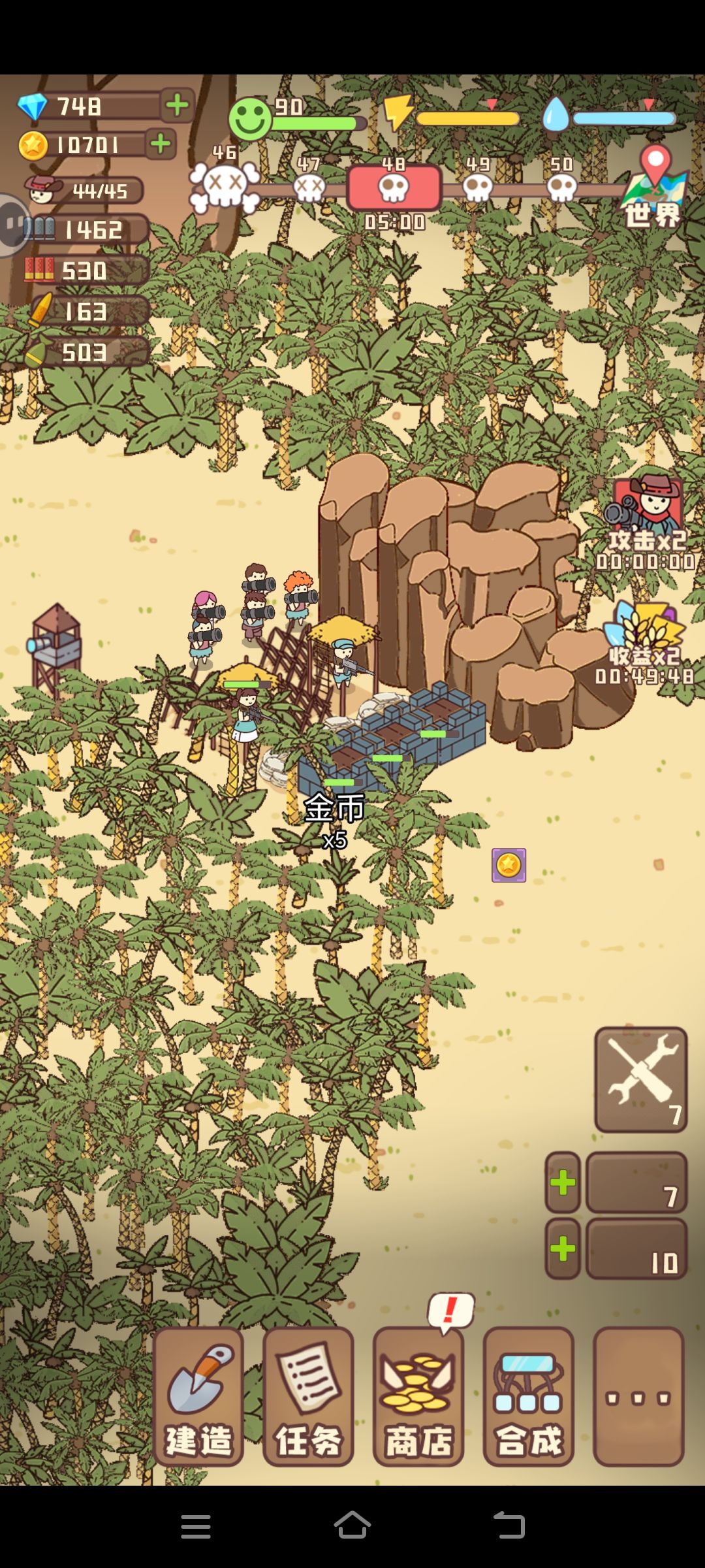 玩法很吸引人,希望出个免广告的功能(哪怕充钱也好),游戏有一些bug,比如说在视野外面打碉堡之类的建筑物只能打掉贴图。很多玩家说完不来跟这个游戏特性关系很大,帐篷那些挂机奖励对提升战力很有帮助,是和现实时间挂钩的,但是游戏时间会一直强迫玩家提升战力。这导致玩家玩一段时间之后就必须离线挂机一段时间,不然难以继续玩。打怪也研究出了一些方法,分享一下: