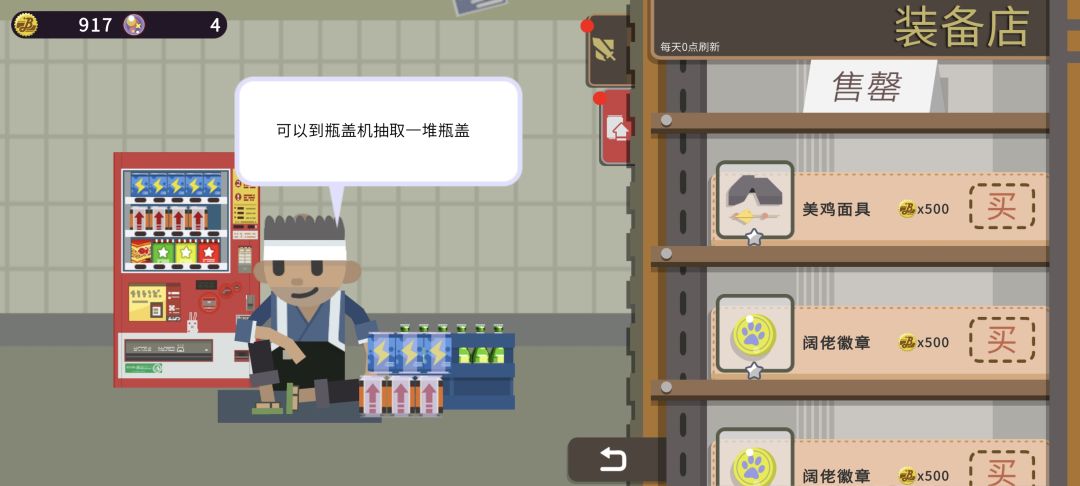 道具主要靠瓶盖升级,获取方式基本和玻璃球一样。后面等级每升一级,需要的瓶盖指数级增长,话又说回来了,道具只是随机出现,使用比例也低。相比装备,可能提升不算太明显,所以升级优先度不高。(有遇到过打不开自动贩卖机的页面BUG,重启就OK了)