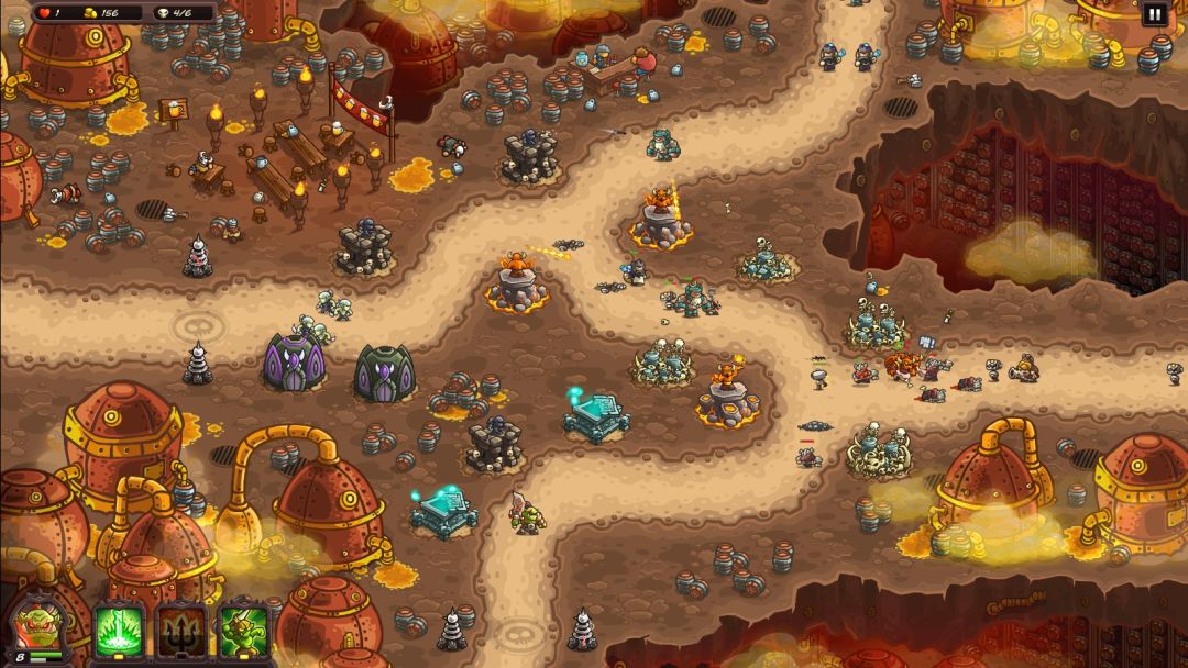 因为本作的操作密度比大部分塔防游戏都要大:战斗中需要频繁移动英雄去截击怪物,需要频繁使用玩家技能配合战斗,还需要通过点击去应对突发的战场事件,这些属于本作乃至本系列特色的玩法都极大地增加了玩家的操作频率,这一点与很多摆好了塔就可以吃瓜看戏的塔防游戏有非常大的不同。实际上用PC游玩,尽管在视觉上不像手机上玩那么累,还可以使用键盘快捷键进行部分操作,但单局30分钟的战斗依然会带来明显的疲劳感。或许适当地增加关卡数量,缩短单个关卡的长度,会让游戏体验更舒服一点。