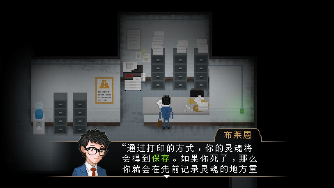 之前提到像素画风在一定程度上已经将恐怖的程度控制在玩家可接受的范围内,但这不意味着恐怖感和压抑感就随之减少了。恐怖感的传达依靠画面来实现只是一个方面,本作所体现出的心理与精神层面的压抑与恐惧并不会因为画面的处理而有所减损,这就是本作用来体现恐怖氛围的另一方面的手段。