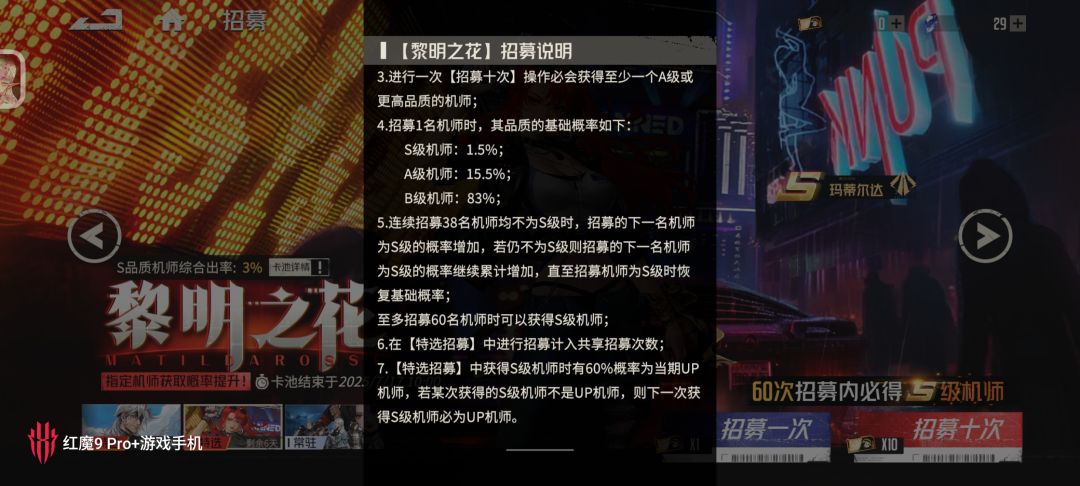 "人机合一"的代价:典型的专武式池子,机师配专属机甲才能发挥大部分实力,同时还是双up池,新手给的钻石抽一组『机师+机甲』都难,零氪党、微氪党不攒抽蹲限定很容易吃瘪。1.5%~100%的出货率(没抽出来一次涨一点)还有40%概率会歪,无论是对收集党还是强度党来说都算不上友好。