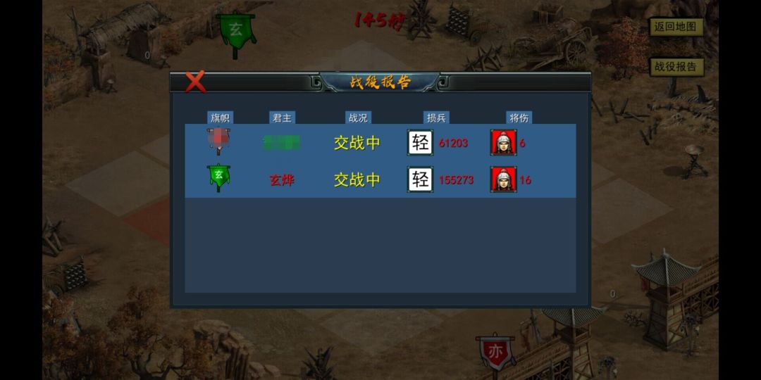 5、氪金玩家伤害大概率会比普通玩家高,这可能是从暴击率和伤害计算方式和灵宝的差别来达到的,看图二,那是一局我被其他玩家围攻,最后赌上一切,从那个发育的最好的人打出来的战损。他用的帅印有66%的加伤,我只有50%多。但你看一下战损是这样的6万兵换了他15万兵,这还是因为兵太少,后面都是三个将打他八个将,我死4.5万左右兵的时候已经换了他13万的兵。注意他加伤还比我高,然后还是被他的人海战术给推了,这说明普通玩家还是能够战胜氪金玩家的。只需要集齐天时(其他氪金玩家内斗)地利(开局分配的位置很好)人和(没人打你可以几乎全军出击)就可以战胜!