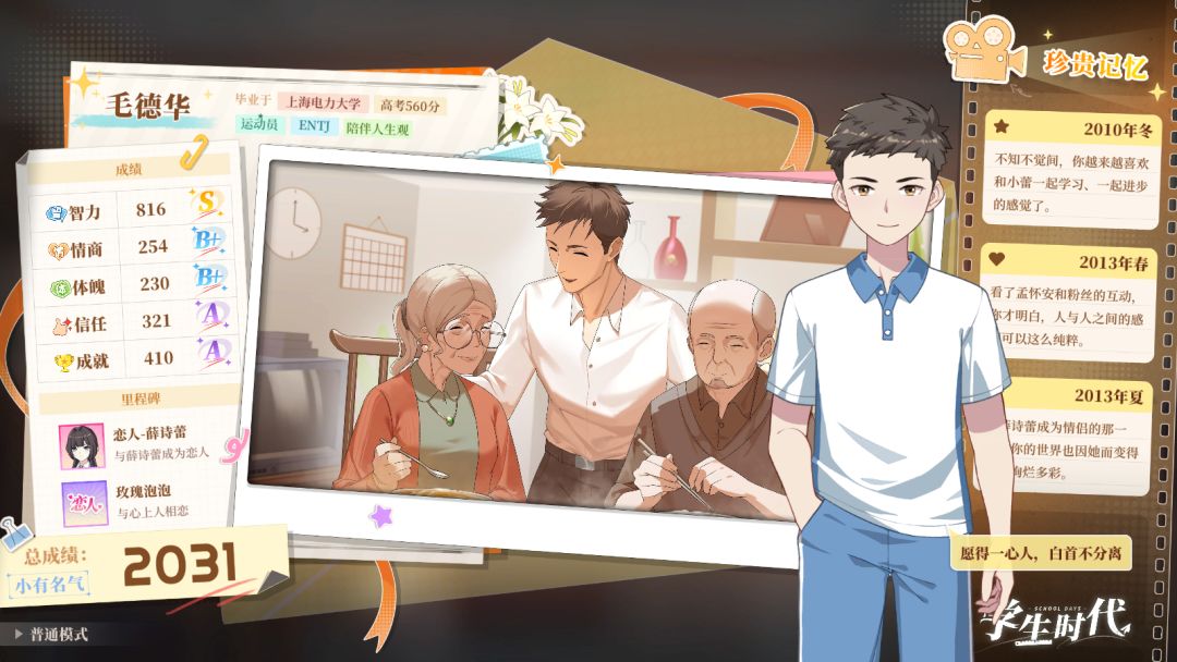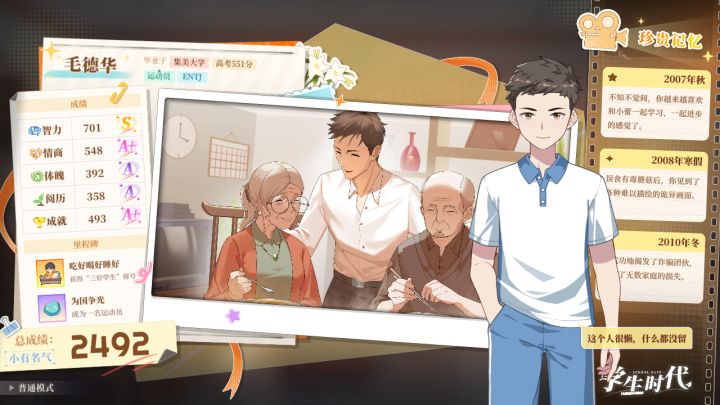 本来是闲着无聊在Steam上找找有什么好玩的游戏,无意中发现了这款《学生时代》然后下载试玩版玩了一下(其实是根本不知道有正式版),然后试完之后只能玩到小学,又去赶紧去看了一下冲了正式版,现在已经开始了第三次。这款游戏可以从小时候到高中毕业,剧情丰富,可攻略多个NPC,可以谈一场恋爱,还有独特的卡牌系统以及小游戏玩法,让人沦陷于其中。