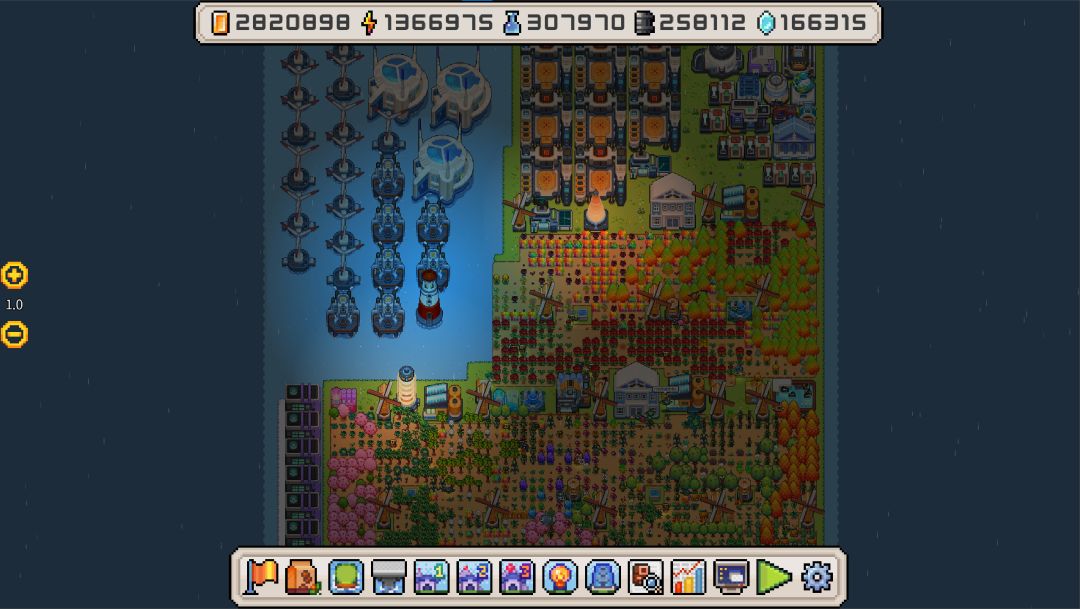 精确的根据每个建筑的增益范围来规划农场对我来说有些疲惫,一开始想要好好规划,弄到后来稍微成型之后不像再仔细的修改了。最后我的农场变成了一副乱中有序的样子。各个功能区都分的很清楚,但是没有方方正正的把一切都排列整齐。整体看上去也是个漂亮的大农场。