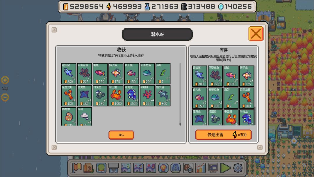 海岛机器人农场中最重要的就是种田。你可以从一小片土豆田种起一直种到完成探索火星任务。不过在这里你也不需要自己种田,给机器人分配了任务后,它们只要有电并且开心就会永远的工作下去。要多建立机器人工厂,多造机器人,生产力是很重要的。没有足够的机器人可是会出现菜没人收,地没人种的状况。游戏中的海域也需要购买,买全之后你就有一片方方正正的9*9大海域。后期的海域购买除了资金还需要原油,变异碎片等资源。
