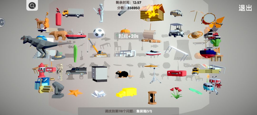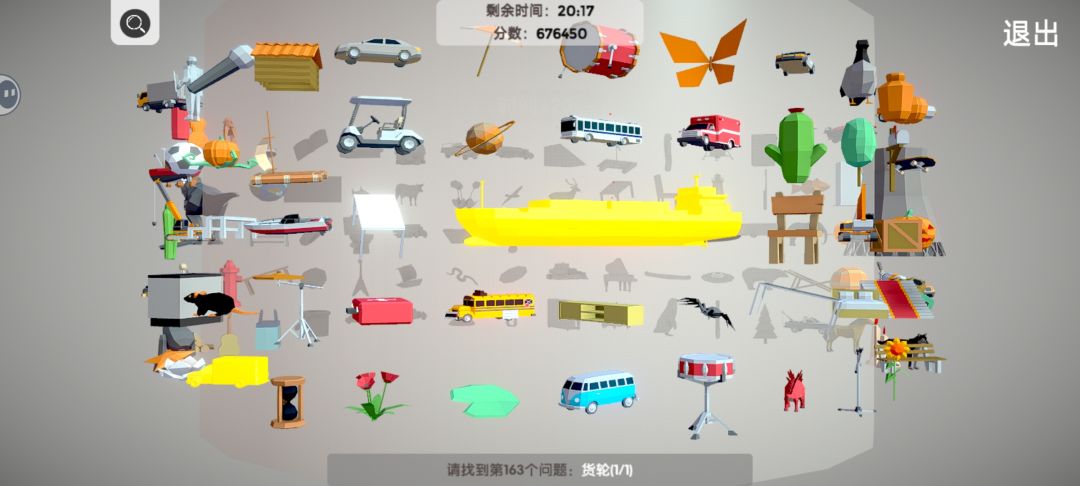 打了前四大关和找物品攒到20分钟画面简洁,日间、夜间的切换很细节主线关卡越往后小物品越多,费眼费手,变化方式很少(消失、变色、转向、位移)视角锁定,只能旋转、缩放,放大了就看不见一些角落区域找物品的描述不严谨,比如把蜘蛛算作爬行动物,把企鹅不算作鸟。另外找集装箱时有bug,判定成木屋了。还有就是完成寻找后,物品有可能变黄后变不回来的bug。希望主线迷题能更有创意。另外想要一个可移动的第一人称模式,感觉找起来很有意思,而且也解决了物品小看不清的问题