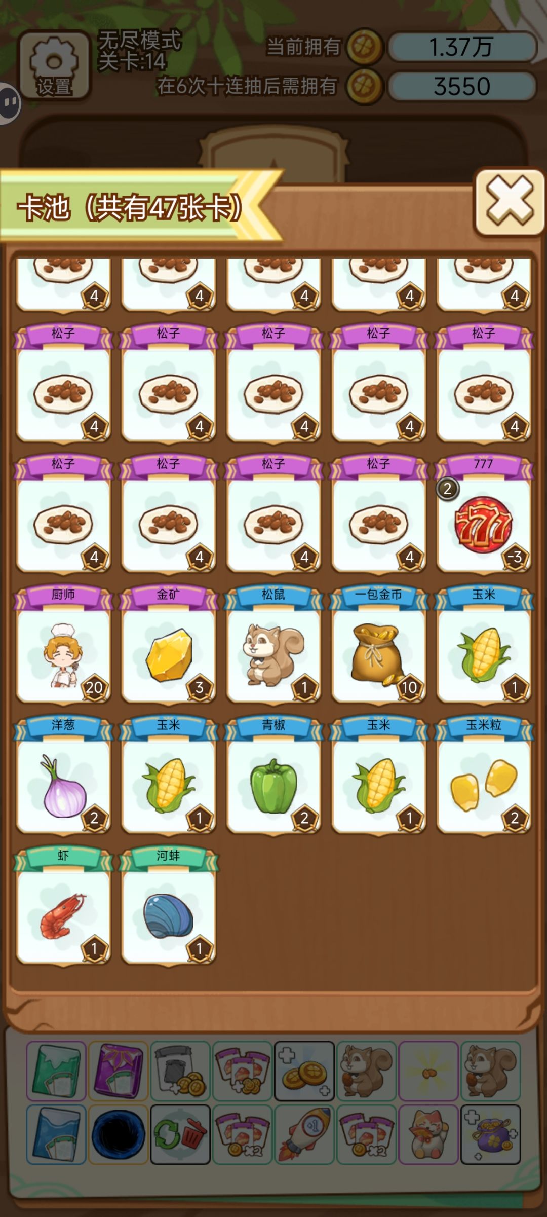 无尽11凑到主牌两张5千金币,14就好几万了,只会越滚越多,相当休闲