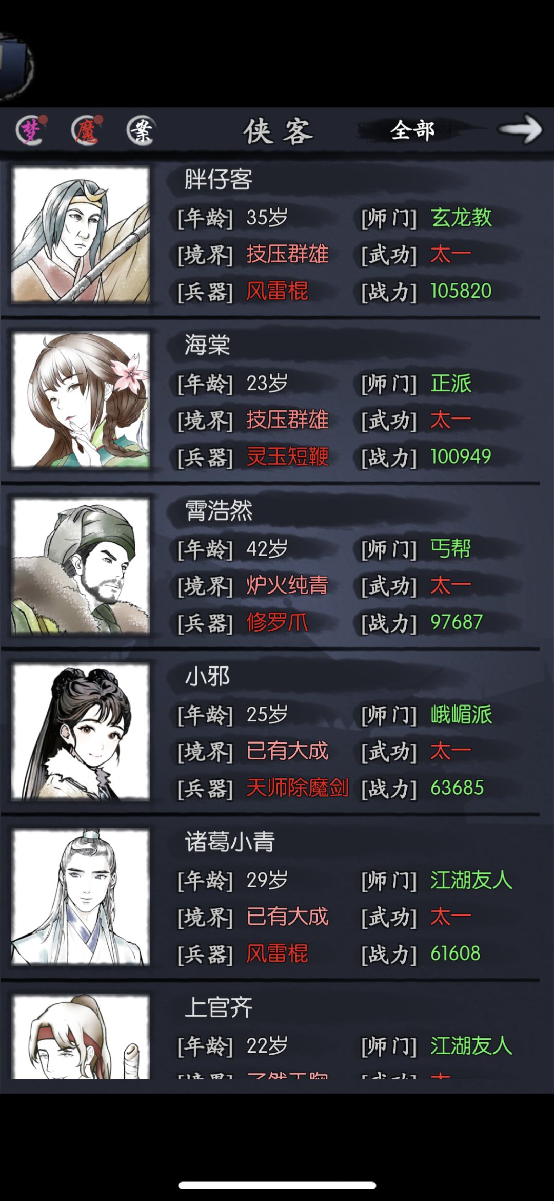 我从小一直都有武侠梦,很偏爱武侠类游戏,梦想着跟那些侠客一起闯荡江湖,所以最近发现了这款算是我心目中的宝藏游戏了,并且ios也有客户端很赞哈哈哈。