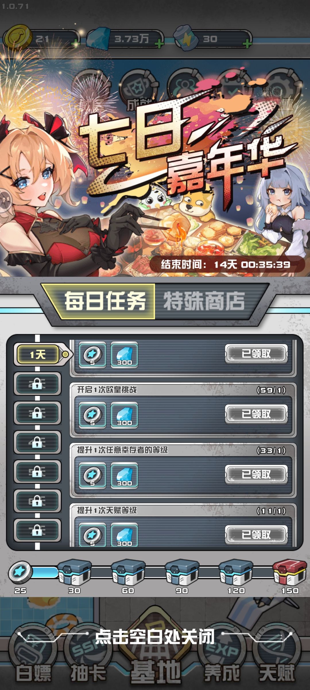 太好玩了 太好玩啦!!!非酋只能肝。。。谁知道我看了多少广告 简直要疯 但也是苦尽甘来了 呜呜呜 有个欧皇挑战 挑战成功可免广 达到一定积分获得非酋碎片以及欧皇特权卡免广碎片 非酋180够了可免 欧皇碎片是6 运气好点可以一下子免广 我....固定保底40积分 可能40一下 每次就3-4个非酋碎片 没有一次 没有一次!最高就50左右 谁懂我的痛???!!凭借多年肝 多年心血(bushi)我终于集齐180碎片了哈哈哈哈!终于给我免广了 哈哈哈哈。。。