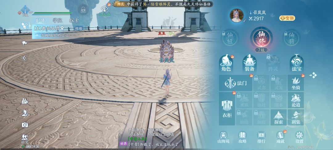 养成内容大部分是MMORPG都有的,如角色等级、装备、技能、法宝、坐骑、灵宠等,还融入了修仙类的洞府及相关功能,只是解锁较慢。除此之外还有仙枢、仙羽等养成,不同等级的养成目标明确,分阶段解锁。可以自主切换不同职业,副本装备不会浪费的同时,也扩充了整体养成数值深度。