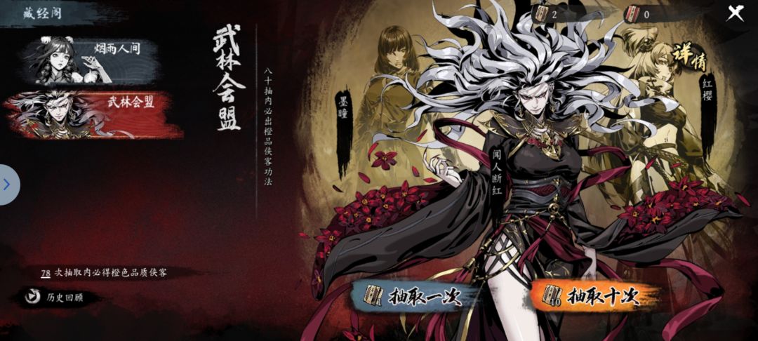 虚无的角色强化与其说是升级,不如说是解封,首先通过抽卡抽到一个携带完全体技能的角色功法,随后在上阵升级的过程中一点点还原他本来的能力,举例来说,橙卡“闻人断红”主要技能为红炎花,其核心机制分别是“击杀敌人释放红炎花”、“闪避释放红炎花”、“命中释放红炎花”等等,你要做的就是在战斗中通过升级和选择卡牌,让主角一点点获得“击杀、闪避、命中均释放红炎花”的效果。