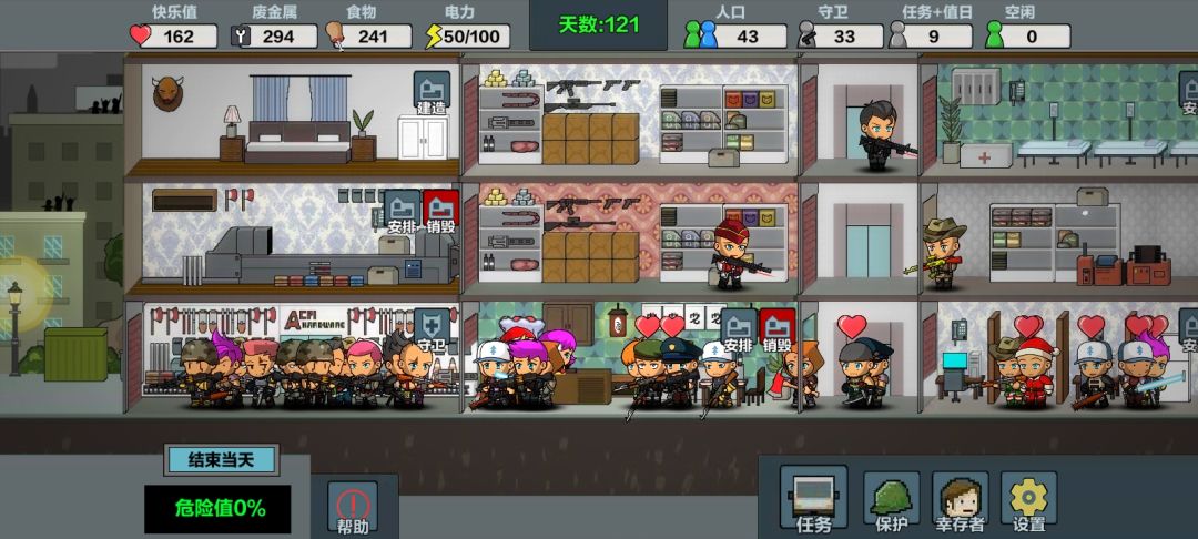 可玩性还是有的,开局先屯物资,前期招人基本不来