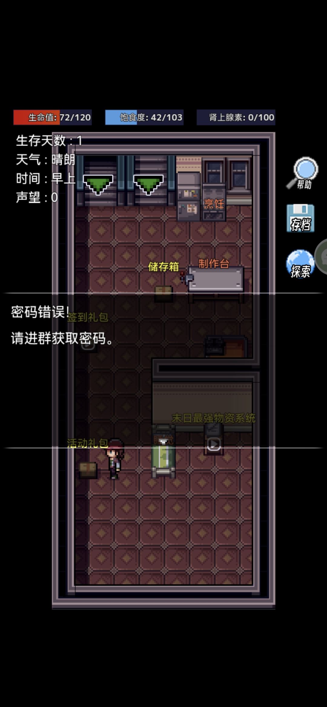 两天内玩了11个小时,很好玩提几个小建议1、开放露西自动使用回血技能2、矿石布料熊精华什么的 开放使用途径3、超市自动营业(或者限制改成:在安全区内自动营业 玩家可以同时去楼上制造和做饭)4、开放女性主角~~~5、背景音乐多加几个选项加油开放团队,快快更新,还有【入群兑换码错误】,记得修正呀~
