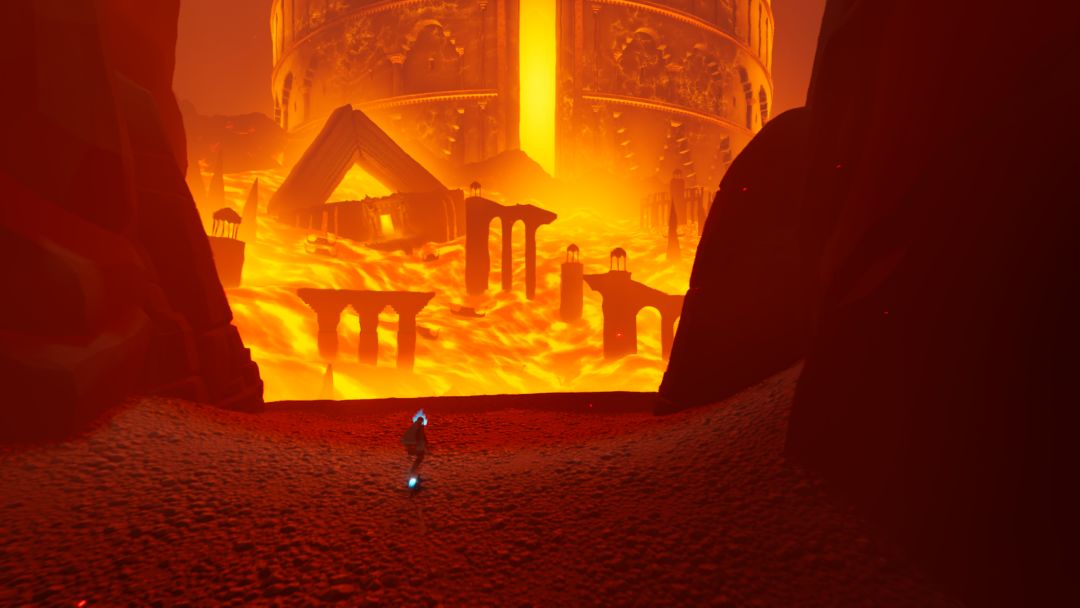 探索方面比起游戏简介页面所提及的三位美术前辈,本作做出了巨大进步。你说它是步行模拟器吧,它的确是,只是它的关卡设计展现超出了这类游戏的平均水平。玩家玩游戏,从来不排斥探索,只要游戏里在应当的地方放置奖励即可,而它就做到了。这一个犄角旮旯,那一个渐隐渐现的远方台地,都有奖励在等着玩家来拿,即便是蚊子腿,对于有强迫症的舔图玩家真的很有意义。举两我喜欢的地图设计,其一是在一条蜿蜒的一本道滑道,时不时会出现可破坏冰块阻挡玩家,其中藏有货币,正常玩家会遵循引导进行破坏从而继续推进并获得奖励,就这样玩家开始习惯这种模式后,突然在道路同时出现两块,而玩家攻击能力只能选其一进行破坏,否则就会打断持续滑行的节奏,当然玩家也可以回头再去破坏另一。正是这一问题引导我回头发现墙角旮旯隐藏的道具,正反馈感真的很强。其二是在一个与主线毫不相干的高山上藏有一隐藏收集物,按道理来说不经过也无从得知,正好游戏进行到一定程度后,解锁了一处高地可以观察到远处并联通,此时站的高,看得远就发挥了作用,原来上面还有一处区域我没有探索过,正当玩家兴致勃勃的前往,却发现空无一物,正当要感到沮丧之时,一转头又出现一青蛙,此刻跳出一极其稀有成就,发现一只青蛙,心理预期这块真给制作人玩明白了。所以探索这块我吹爆。