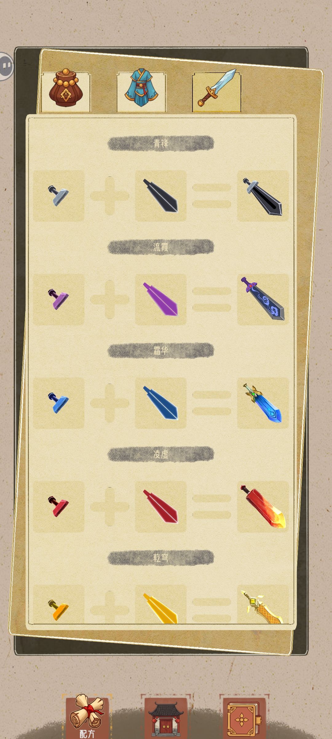 有配方列表,以图标icon的方式展示,可以自己用肉眼一个一个对比,才能发现整个制作体系。