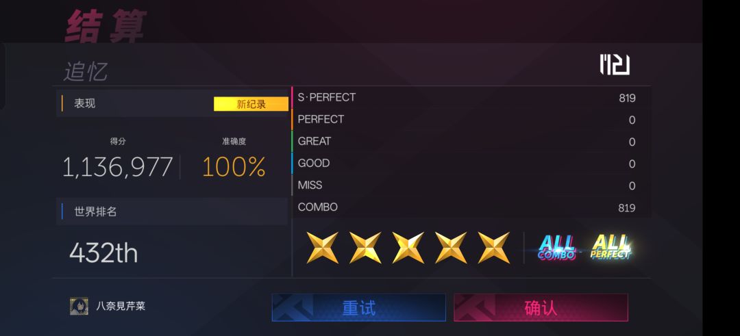 6年过去了,再次见到《追忆》,我依旧能在hard难度拿到ap(当然这首歌的谱子本身也挺友好的),但是过去的事情,也都已经成了属于我的追忆。