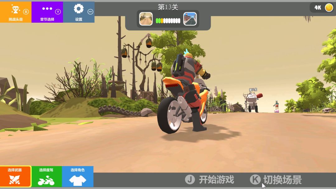 《疯狂摩托》小时候的暴力游戏,终于变成了抽象的认不出来的样子了。疯狂摩托初玩就让我想起了小时候在win98和winxp系统上常玩的《暴力摩托》系统简单,玩法简单,居然还有竞赛模式和故事模式。赛车的场景也有区分,有城市、秋林。山地等等,城市的难度最大,因为有来来往往的车辆和行人,变数非常的大。本作就不一样了,虽然难度也是随着关卡逐步增加,但胜在机制多,赛程短,小而刺激,也很有意思。