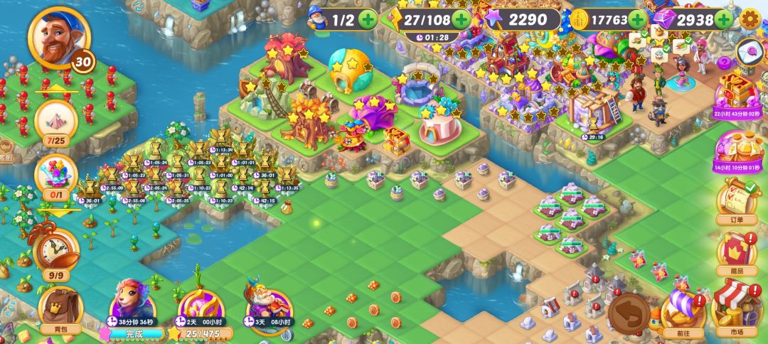 一款休闲游戏,有多种玩法,主岛解锁人物和修建人物对应的专属城堡,神秘岛饲养宠物,主岛没事做可以去玩限时岛领丰富奖励,秘境世界可以创建自己的创意小岛,还有个暂时没开启的天堂湾玩法。