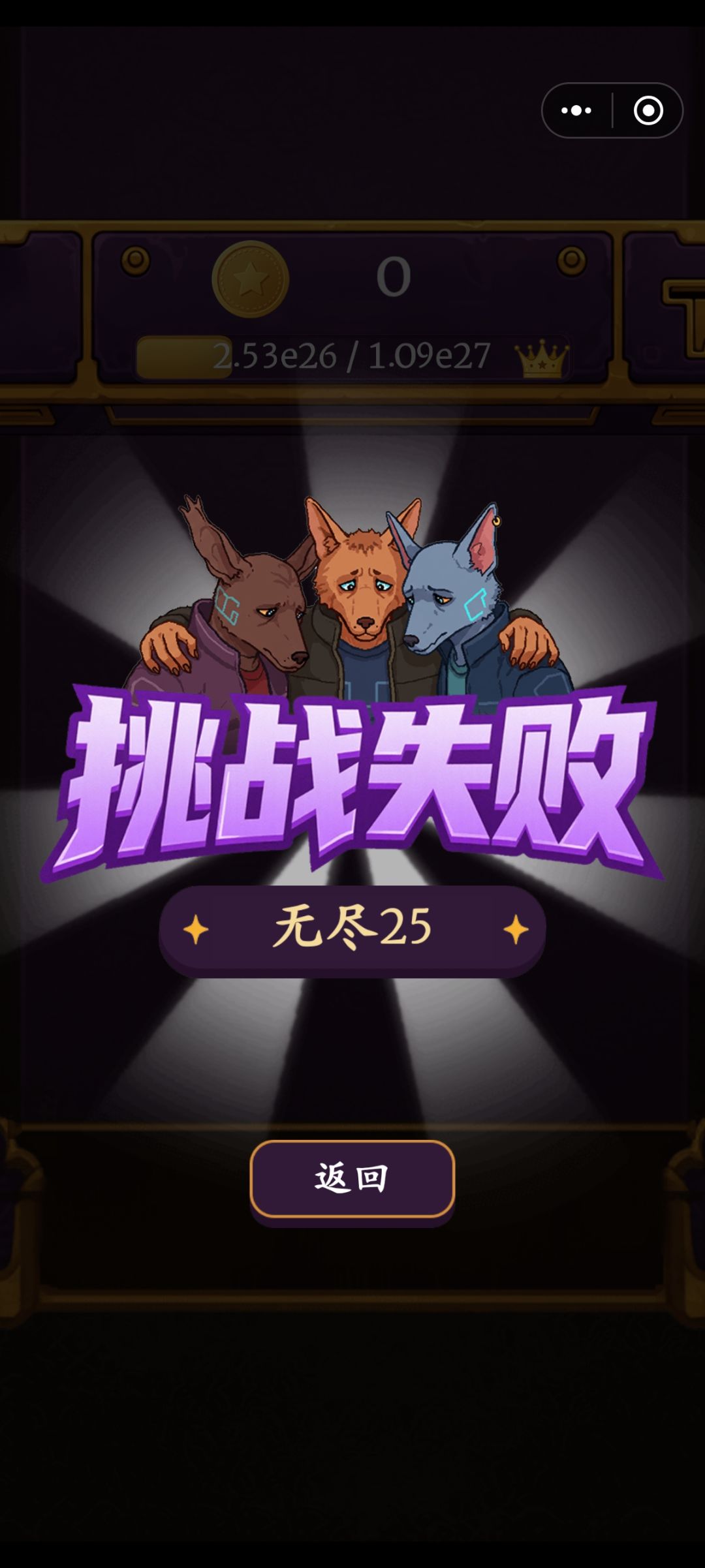 上面也提到了,操作空间有限,上限不够高。角色技能设计可以再完善一下,感觉只有几个是没有上限可以不断拔高的,但就这几张撑着不太够,打到后面打不动了(图为本人打到无尽25打不下去了)。商店刷新卡包是随机的,能开到什么也随机,所以还是有点看运气的,有的时候半天刷不出想要的。再加上每关这8个buff刷新位置随机,所以运气成分还有点大的。