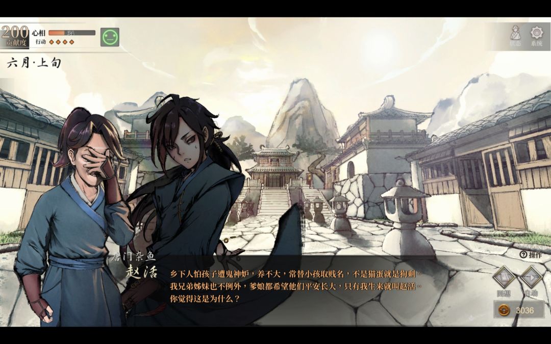 只能说挺好的游戏的,角色人设每一个都鲜明,“三无”小师妹,傲娇二师兄,风流但有时候很靠谱的大师兄,奸商四师兄,混世魔王叶云裳,老女头叶云舟,武力值拉满外冷内热的掌门,天然呆的泷湘女侠,疯疯癫癫但很仗义的小乞丐樊啸天,经商天才且非常喜欢小孩的上官萤,还有等等等等……